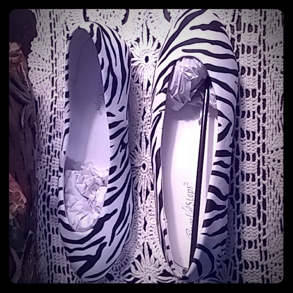 Darling, Zebra striped, small wedge, comfort insole, never worn