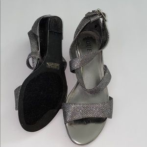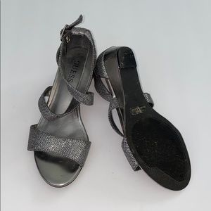 These are short wedge GUESS heels. They are worn but still in good condition.