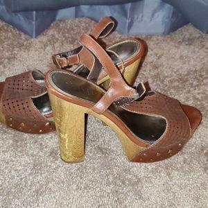Leather T-strap, chunky & sturdy heel with a platform toe. They have a lot of life left in them. If you know about Baker's shoes, you know. If you don't know then let me say albeit pricey, they're sturdy & well built...they last forever & are forever on trend!