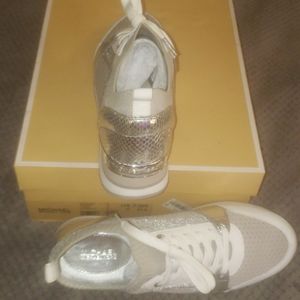 Michael Kors Billie knit trainer Aluminum designer shoes worn a few times still in like new condition