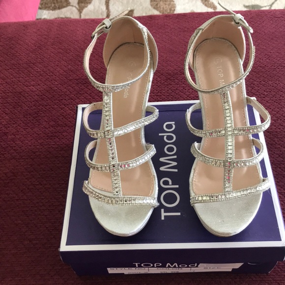 Elegant wedge heel Silver sequined shoes
