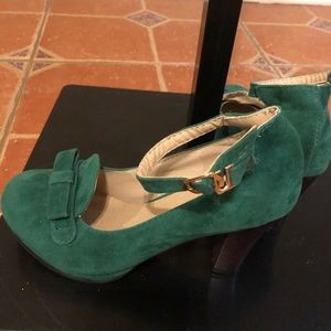 Green suede shoe with cute little bow on top
