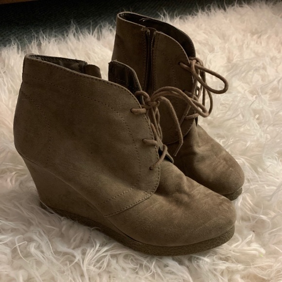 Have worn these some. There’s only one little mark on one of the toes but that’s all!! Says size 7 but I think 6-6.5 can fit