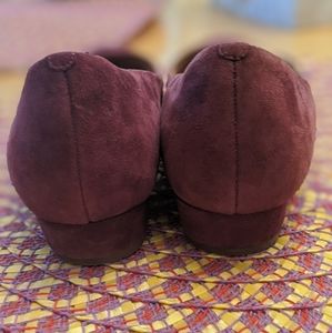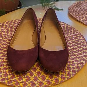 These J. Crew Maroon/Burgundy flat's are the perfect Fall colored shoes! They're like a deep wine color, Rounded toe Small. Block heel is approximately .75." size 9M.