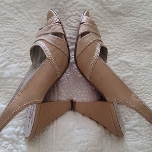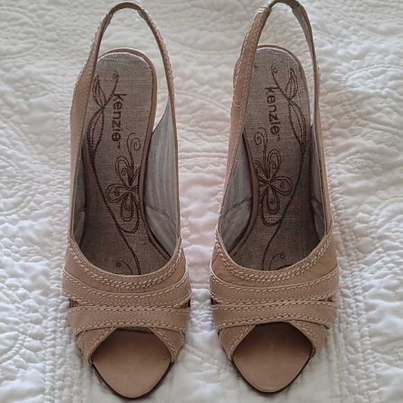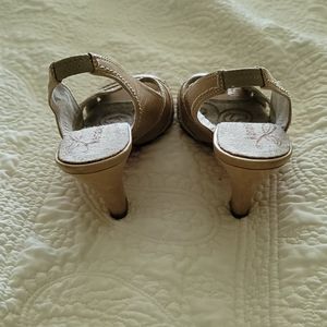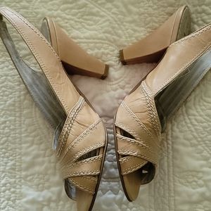 Kenzie heels sling back tan leather with stitching open toe like new