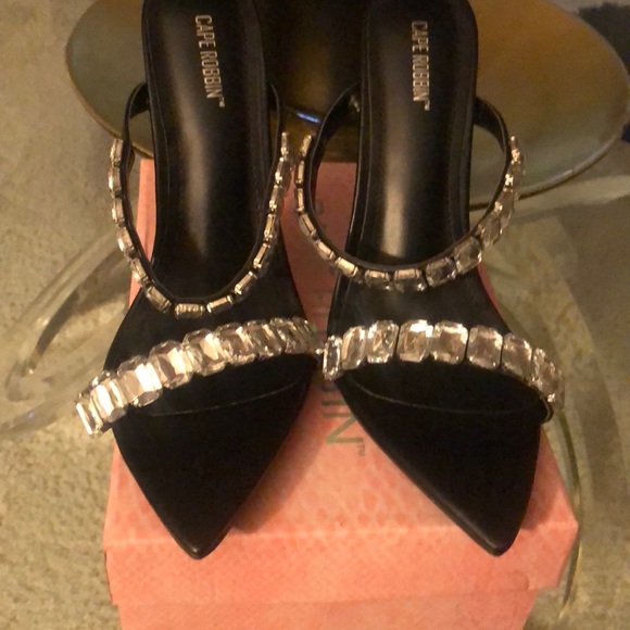Size 9 NWOT black pointed toe slip on 4 in. Heel Sandal with beautiful Rhinestones.