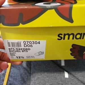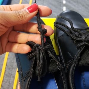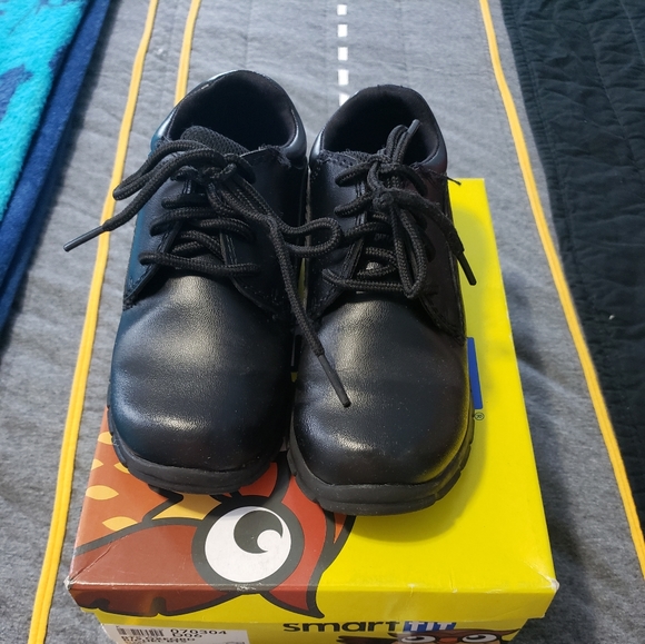 Boys school shoes, Oxford style. 1 lace slightly frayed. Good condition. Size 12 1/2. Synthetic black ⚫ leather from man made materials. Smart Fit a Payless brand. Looking to sell