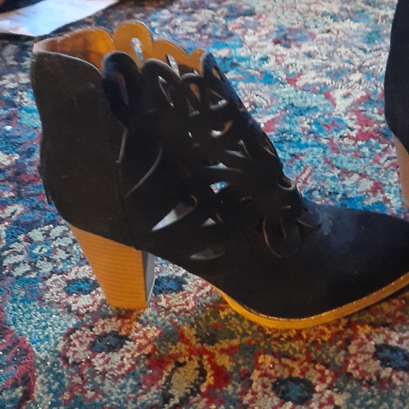 @bucolicbohemian hello. Thank you for your interest. I'm not home right now. When I get home I'll send a picture. The last picture is pretty clear of the heels