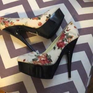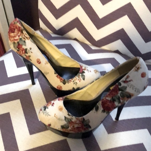 Floral platform heels off white with floral