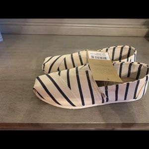 Cream flats with blue stripes