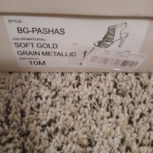 BCBG generation. Never worn with box Soft Gold grain metallic strappy leather upper dress sandals. 5 inch heel