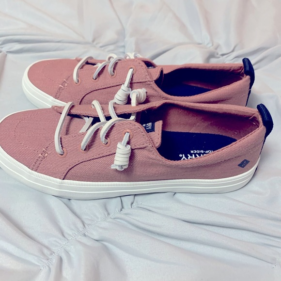 Sperry crest vibe washed blush twill Barrel lace sneaker. Fun, flirty, and sporty. Not to mention totally on point when it comes to style.