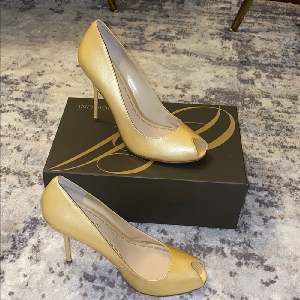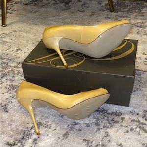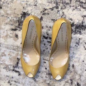 Yellow Enzo pumps. Brand new, never worn. Right shoe has a slight imperfection.