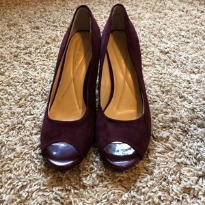 Dark red/ maroon heels! About an inch heel, suede material. size 8.5. ONLY WORN ONCE