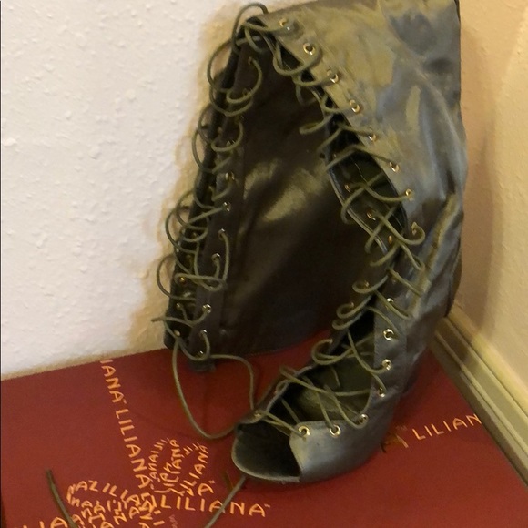 Olive green thigh high lace up open toe block heel boots size 8 (brand new)