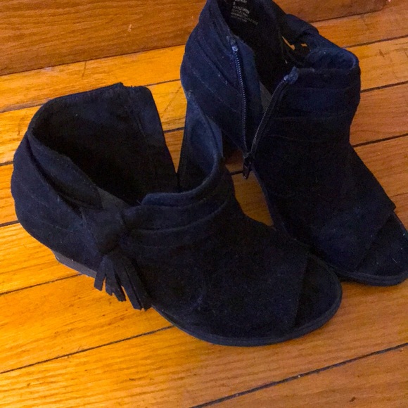 Dress up or dress down with these cute black heeled open toed shoes!