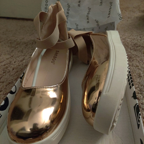 Rose gold mirrored mary janes ankle straps. Never worn size 9.