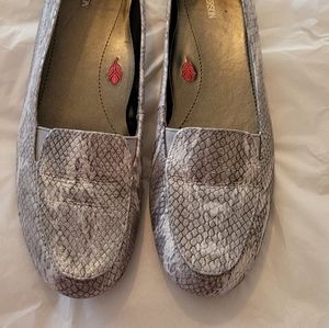 Faux snake skin loafers fits like size 10