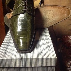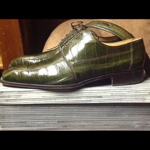 Lightly worn olive color genuine alligator shoes $875.