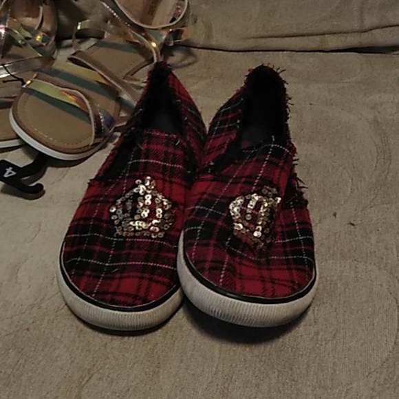 Red and black union bay ip on shoes. A bit worn but still very cute. Size 61/2