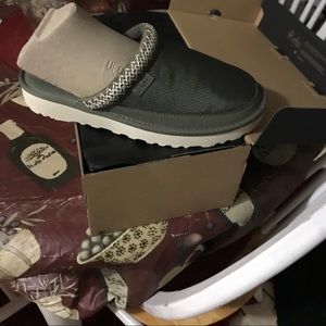 Olive green men’s slipper shoe,great for indoor or outdoor,women can also wear these,new in the box uggs
