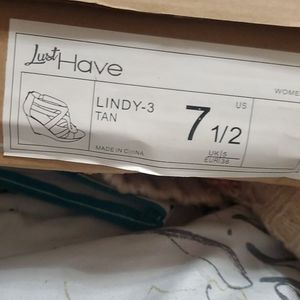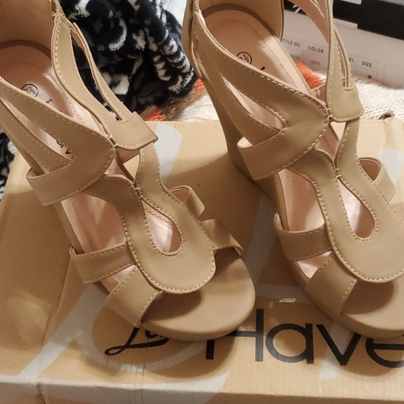 Tan Wedges , open toe, zipper back , strap design, never used
