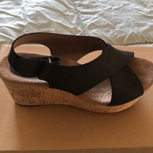 Clarks black with cork bottoms great condition