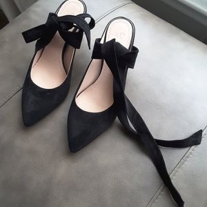 Black suede kitten lace ups