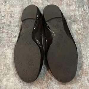 Tory Burch original patent leather chocolate brown and blue flats. Super cute and the color mix is amazing. Just a few scuffs but still in great shape!