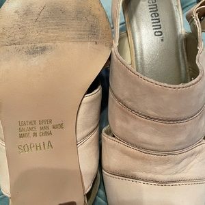 Beige Suede Leather Upper with chunky heels. Worn but in great condition! Comes from a smoke free and pet free home.