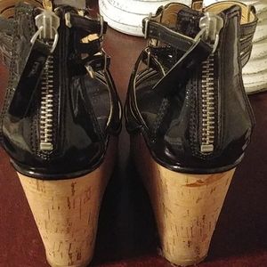 Bla k scrappy 4.5inch high wedge sandle. Padded foot bed. Super cute for summer. Rarely worn.