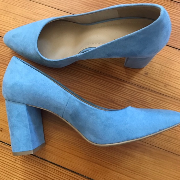 Suede looking light blue shoes. Very comfortable. Look brand new no flaws.