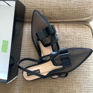 Bow decor mesh panel slingback flat