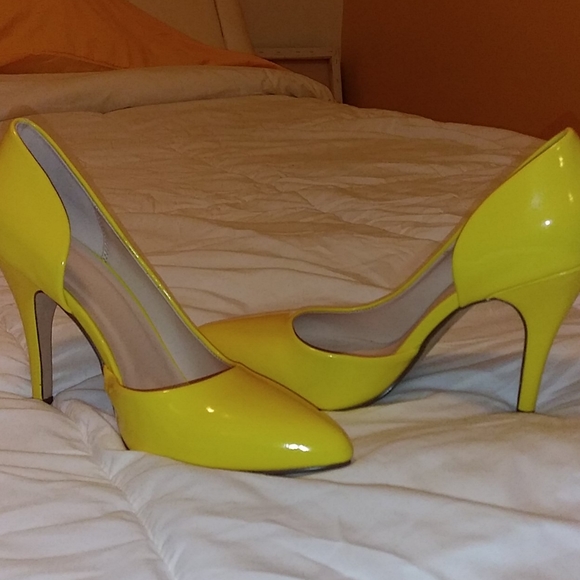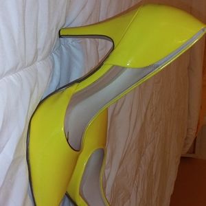 Yellow patent pumps never worn