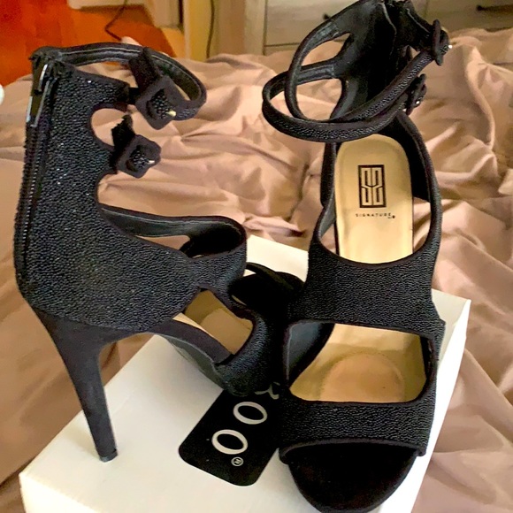 4” Dressy heel with double strap around the ankle and open-toe.