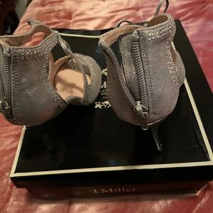 Silver high I Miller heel shoes, worn few times, still have some life left.