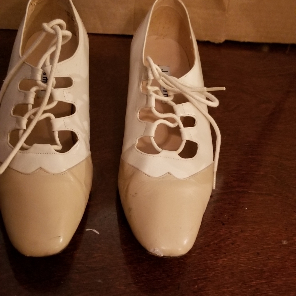 Business lace up spectators. Low stacked heel. Leather. Needs heel pads. I loved these shoes. They are so classy.