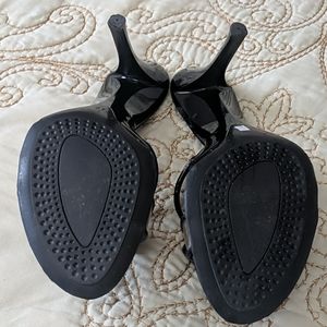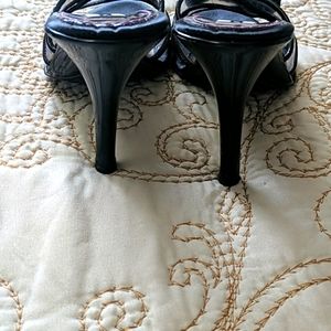 Beautiul black sandals piped with pink thread. Lightly worn.