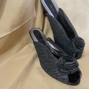 Synthetic silken upper with metallic sequins detail. *Soft leatherlike lining *Rubber sole for traction *2" heel
