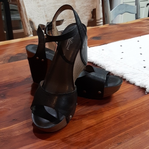 Black wooden wedges with metal studs