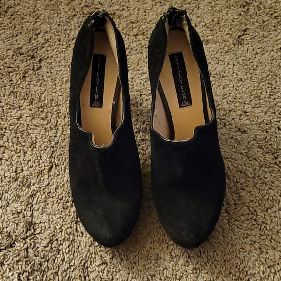 A nice pair of black suede shoes 5inch heal zips up the back good condition