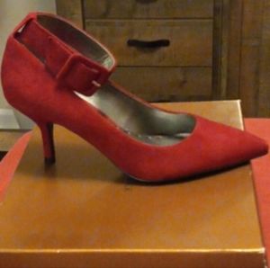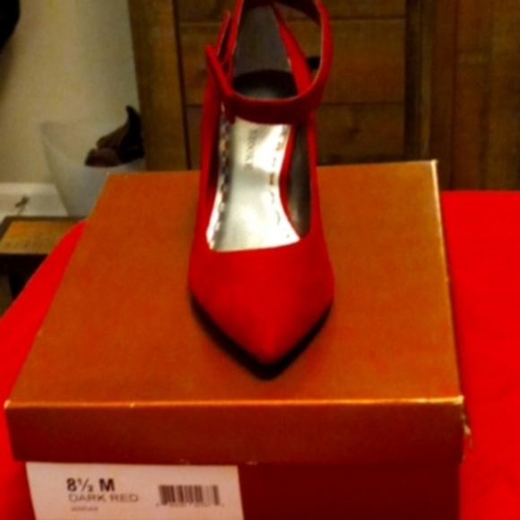 Audrey Brooke Dark Red Suede, ankle strap 2.5 inch heels, size 8.5 Never worn shoes