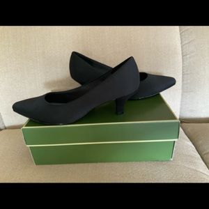 EUC Like new as worn only once. Peau de soie 2” kitten heel pumps. Very comfortable padded foot bed with arch support