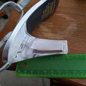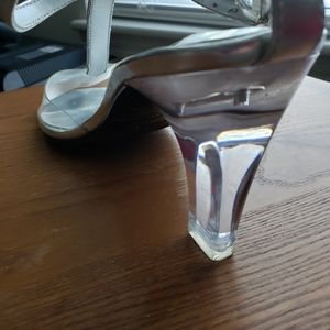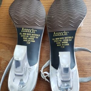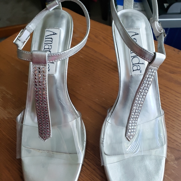 A dressy sandal with rhinestones and 3" heel in silver. Wore once to a wedding.