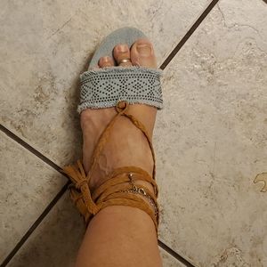 Light blue demin Tommy Hilfiger 4 in open toe heels with back strap