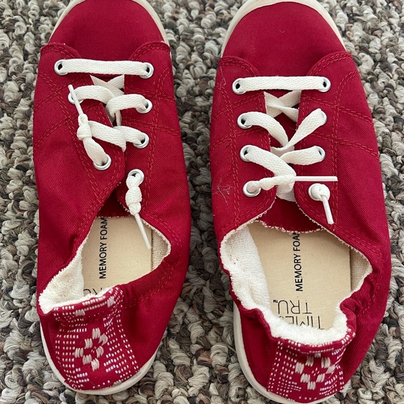 Red and white shoes, never worn, very comfortable just too small for me