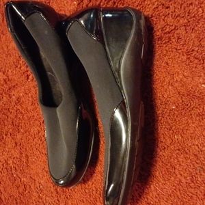 Black shoes .top stretch material.
