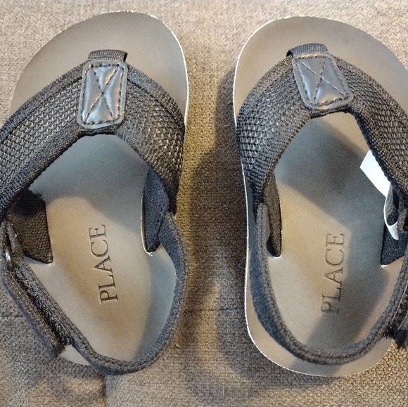 Shoes for Toddler boy. Purchased from Child's Place. Size 4-5. Flip flop style with back strap. The strap has velcro to adjust. Never actually worn.