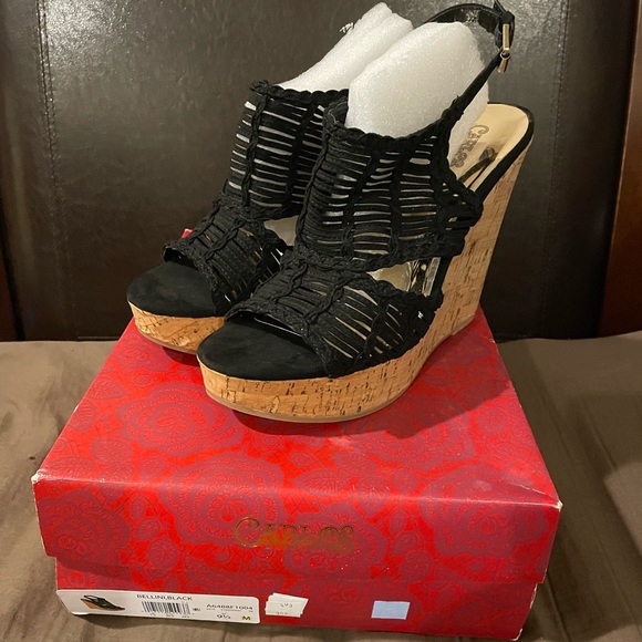 Carlos Santana wedges, new in box. Black are a size 9.5 and tan are a size 9. $25 each, $50 for both.
