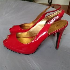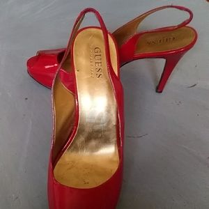 Guess red patent leather sling back heels